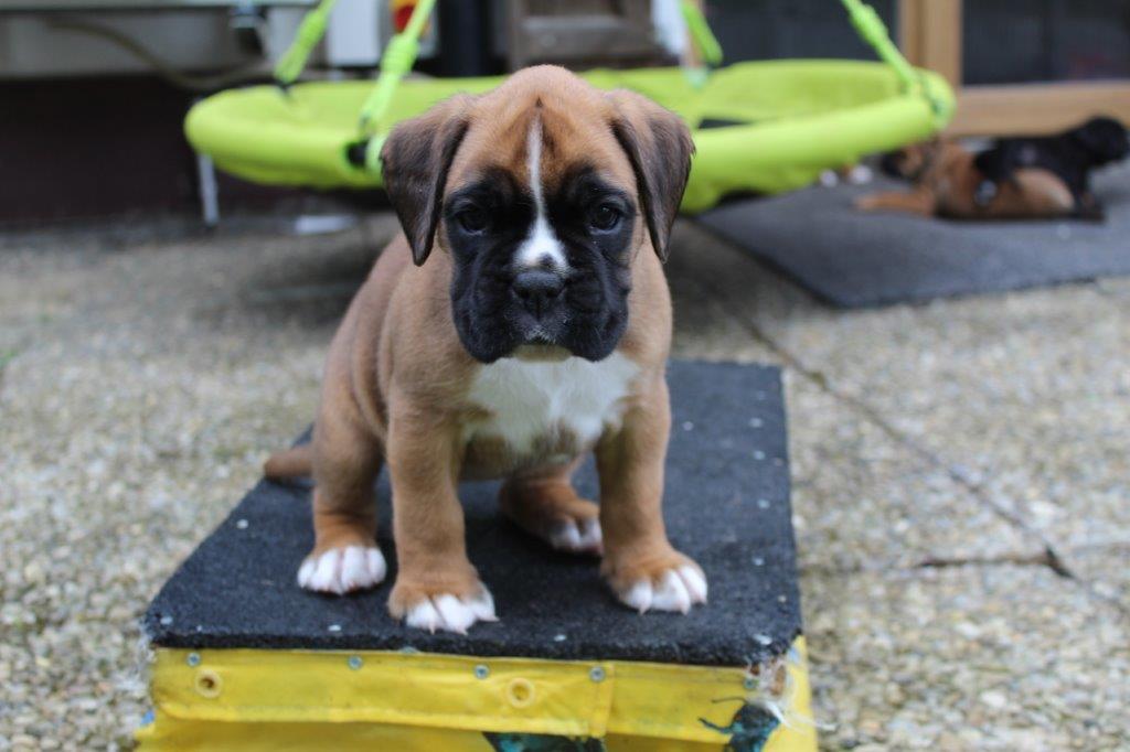 Wir üben zusammen das Leinenlaufen, das Abrufen, gehen kontrolliert über den Parcours etc. Am Schluss lassen wir die Welpen immer noch kontrolliert spielen, auch dieses Spiel ist wichtig für eine gute Entwicklung des Welpen.